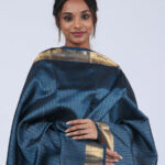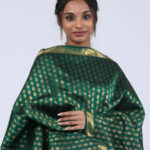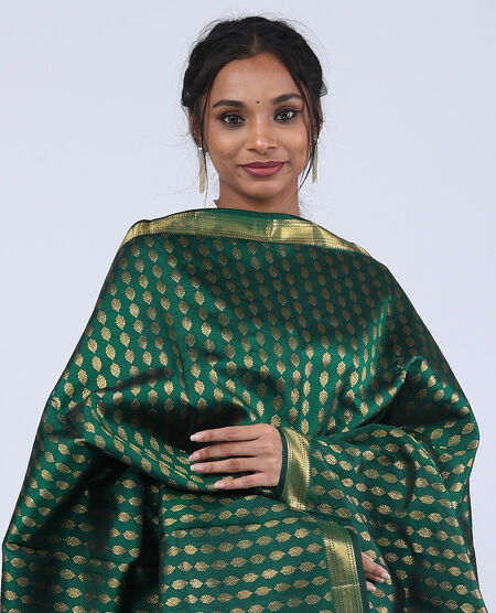 Home Women Dupatta Dark green zari jacquard design pure-silk dupatta with tassels